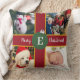 Coussin Joyeux Noël Famille Photo Rouge Vert Monogramme