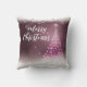 Joyeux Noël moderne Snowflake Script Jeter l'oreiller comprend un arbre de Noël moderne de flocons blancs avec le texte "Joyeux Noël" dans élégant script blanc sur un arrière - plan violet. Parfait pour les cadeaux de Noël et la décoration de vacances. Conçu par ©Evco Holidays www.zazzle.com/store/evcoholidays