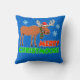 Joyeux jeu de Noël Pun Jeu Jetez l'oreiller. Il y a un orignal de dessin animé portant un chapeau de Père Noël. Une décoration de vacances pour les amateurs de puns de Noël.