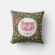 Ce fabuleux Noël folk art 16" x 16" vert coussin avec un motif de santas, de pain d'épice, de sapins, d'ornements, d'anges et de cadeaux qui dit Joyeux Noël en français "Joyeux Noel" et a votre nom de famille serait génial sur votre canapé, lit ou chaises! C'est tellement festif et va avec n'importe quel décor de Noël, c'est rustique mais rétro et moderne mais traditionnel ! Il va être fantastique et ajouter cette petite touche de Noël supplémentaire à votre maison!