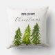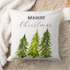 Arbres de Noël aquarelle jeter oreiller. Joyeux Noël, vert, festif, vintage, coussin rétro.
