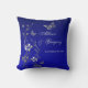 Cet oreiller réversible de 20"x20" bleu royal et gris à fleurs a des fleurs à l'apparence argentée, des papillons et des vignes, ainsi que les noms de la date de la mariée et de la chambre et du mariage sur le côté bleu, et "Heureusement toujours après" sur le côté gris. Il correspond au faire-part de mariage ci-dessous. Tout le texte est personnalisable. Si vous avez des demandes, envoyez un courriel à niteowlstudio@gmail.com.