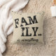 La famille est tout coussin dans la couleur beige avec la typographie de noir et de manuscrit d'un côté, noir avec la typographie blanche de l'autre. Choisissez juste la taille et le tissu.