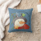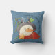 Accueil est là où le Coussin de Snow Falls Country. Ce coussin présente une image rustique d'un bonhomme de neige sur un arrière - plan bleu neigeux.