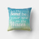 Ce coussin indique l'été ! De l'arrière - plan d'ombre à de jolies nuances de bleu, de sarcelle d'hiver et de vert. Au texte qui indique laissez le sable être votre siège comme les vagues frappent vos pieds. Un croquis d'ensemble des étoiles de mer encadrent le coussin et ajoutent la texture intéressante. Ce coussin est grand pour le décor de maison de plage ou à la maison avec un thème côtier d'océan.