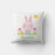 Un mignon lapin de Pâques rose jette l'oreiller. Personnalisez-le avec votre nom ou "Happy Easter" Conçu pour vous par Blackberry Boulevard.