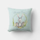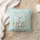 Coussin Lapin de Pâques à l'aquarelle dans une couronne fl