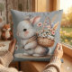 Coussin Lapin mignon avec fleurs aquarelle