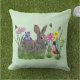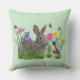 Coussin Lapin, Robin, et fleurs. Personnalisable