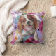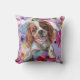 coussin d'art floral à chien avec blenheim cavalier roi charles design spaniel aux couleurs de l'été. Recule blanche.