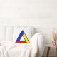 Elégant triangle abstrait d'inspiration mondrienne en bleu, jaune, rouge, sur l'oreiller blanc. Art abstrait moderne et coloré
