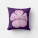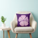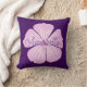 Une seule fleur rose Lavatera avec votre nom sur un coussin violet foncé.