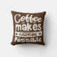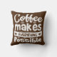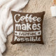 Texte blanc cool avec des grains de café sur l'oreiller de jetée parfait pour ceux qui aiment et ont besoin de café dans leur vie! En disant : Le café rend tout possible !