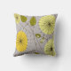 Les horloges modernes de pissenlit de coussin de la moitié du siècle se reposent aux nuances du jaune avec le feuille vert sur un arrière - plan gris et texturisé de regard. De retour du coussin avec la conception coordonnée et signé par l'artiste, Gail Gabel.