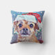 Le plus mignon chien de Noël jamais vu ! Lance la conception de l'oreiller. Un cadeau parfait pour une maman de chien. chapeau de Père Noël; grands yeux innocents; neige tombante. Scène de Noël qui réchauffe le coeur pour l'amoureux des chiens.