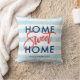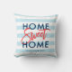 Coussin à la maison doux à la maison chic comportant les mots "maison douce à la maison" en caractère sans obit et sans empattement bleus et manuscrit à la mode orange tous sur un fond en pastel bleu et de blanc de rayures. Vérifiez d'autres articles à la maison ici https://www.zazzle.com/rosewoodandcitrus/gifts?cg=196222223301298047&rf=238364477188679314 de décor