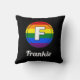 Lettre F Initial & Nom Gay pride Monogramme Arc-en-ciel - Oreiller à lancer noir. Cette conception circulaire comporte une lettre F monogrammée blanche sur un Arrière - plan de la LGBTQ Pride Flag. Ajoutez un nom à ce coussin afin que vous puissiez faire quelque chose d'unique et personnel pour votre décor maison. Super pour vous ou une personne spéciale dans votre vie.