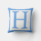 Lettre H. Joli monogramme (unique première) jeter l'oreiller. La bordure et la lettre unique sont faites en bleu bébé. Nos oreillers à jetons sont offerts en trois tailles : carré 16 po x 16 po, carré 20 po x 20 po, ou coussin lombaire de 13 po x 21 po, et en coton ou polyester. Produite par des mères célibataires ayant un emploi durable aux États-Unis, votre achat de coussin sur mesure contribue à briser le cycle de la pauvreté pour les mères célibataires et leurs enfants pendant qu'il est beau dans votre maison! Designs by Scarribaby Design, soutenus par la garantie Zazzle.