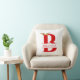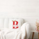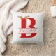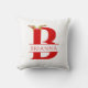 Lettre de monographie de Noël Un Oreiller à lancer de fête de cerfs Antlers est un modèle à deux côtés. La lettre B monogramme scindée, décorée de bois de cerf et d'une couronne de fleurs est à l'avant. Il y a un champ de texte que vous pouvez customiser avec votre nom. Le dos est un motif rayé rouge et blanc