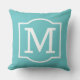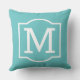 Coussin d'accent extérieur carré élégant et classique avec un premier monogramme avec un cadre décoratif simple en blanc avec couleur arrière - plan bleu aqua / turquoise. Customisez l'arrière - plan pour coordonner votre décoration extérieure.