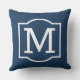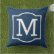 Le coussin d'accent extérieur carré élégant et classique dispose d'un premier monogramme avec un cadre décoratif simple en blanc avec une couleur arrière - plan bleu marine. Customisez l'arrière - plan pour coordonner votre décoration extérieure.