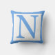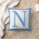 Lettre N. Joli monogramme (unique en première ligne) jeter l'oreiller. La bordure et la lettre unique sont faites en bleu bébé. Nos oreillers à jetons sont offerts en trois tailles : carré 16 po x 16 po, carré 20 po x 20 po, ou coussin lombaire de 13 po x 21 po, et en coton ou polyester. Produite par des mères célibataires ayant un emploi durable aux États-Unis, votre achat de coussin sur mesure contribue à briser le cycle de la pauvreté pour les mères célibataires et leurs enfants pendant qu'il est beau dans votre maison! Designs by Scarribaby Design, soutenus par la garantie Zazzle.