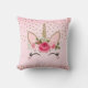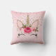 Coussin Licorne Florale Rose et Paillettes Dorées