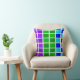 Couleur de paon clair et foncé Carrés Une photo des plumes d’un paon coloré a inspiré cet oreiller de carrés violet, bleu et vert. Par celeste@khoncepts.com