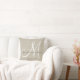 Coussin monogrammé personnalisé beige, gris et blanc avec nom de mariée et de mariée et date de mariage dans une police de script superposition design sur un arrière - plan photo avec effet photo en lin beige IMPRIMÉ. Elke Clarke© pour MonogramGallery à Zazzle. Fait un grand cadeau pour les jeunes mariés. Grand accessoire tendance et élégant pour votre chambre, chaise préférée, comme décor maison amusant dans votre chambre familiale ou ajout décoratif formel à votre salon. Customisez avec vos noms, date initiale monogramme et date mariage.