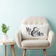 Ajoutez les noms des couples et la date du mariage à l'arrière du coussin décoratif "M. & Mme" en noir et blanc.