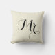 M. Pillow dans le noir sur la couleur beige légère d'arrière - plan, avec le dos noir et léger rayé de beige. Une partie de M. et de Mme paire. Personnalisable. La couleur d'arrière - plan, le texte, et la couleur des textes peuvent être changés.