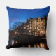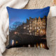 Coussin de carreau de photo avec les vieilles maisons romantiques de la ville d'Amsterdam, construites le long du canal de Prinsengracht, avec la réflexion des lumières dans l'eau immobile au début de la nuit en capitale de la Hollande.