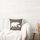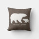 Maman et bébé ours coussin pour la décoration de la nurserie. Au dos du coussin, il y a un motif à pois blancs sur un coussin marron.