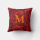 Coussin Marbre rouge orange Monogramme et nom personnalisé