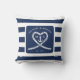 Coussin Mariage à l'ancre de cœur rayé bleu marine