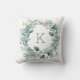 Belle couronne d'eucalyptus Coussin jeté monogrammé. Ajoutez votre initiale pour le personnaliser. Fait un excellent cadeau pour n'importe quelle maison ou pour les cadeaux de douche de mariage et de mariage.