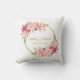 Coussin Mariage rose floral d'or de guirlande d'aquarelle