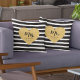 Coussin Mariés Élégant Cœur Doré Rayures Noires