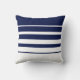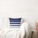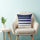 Oreiller à lancer rayé bleu et blanc de la marine Abstraite moderne.