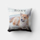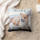 Un simple oreiller mémorial de photo d'animal de compagnie, avec le nom de votre chien ou chat, votre photo préférée et le texte 'Pour toujours dans nos cœurs' avec une petite empreinte de patte. Des superpositions ont été ajoutées pour rendre le texte plus lisible. C'est un oreiller de souvenir merveilleux pour vous-même, la famille ou les amis.