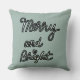 Refined festive throw pillow in modern farmhouse style . Sage green mint green with handwritten calligraphy in black and white.Merry and bright script in a new color,cool,trendy chic,stylish.Minimalist minimal simple and beautiful.Festive Christmas holiday wintertime season but easy to blend and match in your refined ambient.