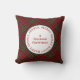 Personnalisez avec votre nom ou celui de votre famille. Coussin de vacances dans le traditionnel écossais écossais écossais de rouge et vert est une façon tellement amusante de décorer pour les vacances. Couleurs de Noël dans un plaid en diagonale avec un cercle de paroles joyeuses, joyeuses et joyeuses. Centré avec votre nom ou message personnalisé. Cette version a le tartan Royal Stewart plaid, qui est rouge et vert avec cercle central de blanc avec le libellé rouge.