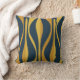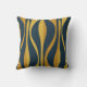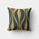 Mid Century Moderne Retro Lounge Motif d'oignon rayé en bleu marine et de l'oreiller à lancer de moutarde. Contemporain moyen-siècle design abstrait ; les les années 50 60 funky les années 70 esthétique. Des couleurs riches. Décor intérieur élégant, animé et chic. Par Kierkegaard Design Studio.