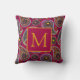 Joli et girly, rouge classique, bleu marine, et jaune motif paisley coussin décorateur customisé avec votre monogramme/initial.