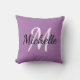Jetez l'oreiller avec un arrière - plan violet et blanc monogramme personnalisé première initiale et prénom.