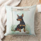 Add lively charm to your home with this Miniature Pinscher throw pillow featuring a watercolor design and customizable name flag. Their spirited personality lights up any room.
