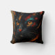 Add a touch of contemporary mystery to your home with this stunning artistic throw pillow. Featuring a striking, vibrant portrait of a black cat, this design blends bold abstract strokes with rich, warm tones of orange, teal, and gold.