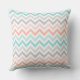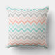 Design élégant et chic carré avec accent coussin, avec un motif rayé de chevron audacieux et de jolis tons pastel ombres blush to peach / rose, bleu clair to aqua, gris clair à gris moyen, blanc