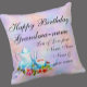 Changez le nom de grand-mère et ajoutez les noms de famille à cette belle Coupe de Thé & Teapot Floral Design Coussin d'anniversaire.