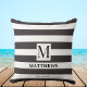 Coussin Monogram Marine Blue Strips Nom de famille Beach H
